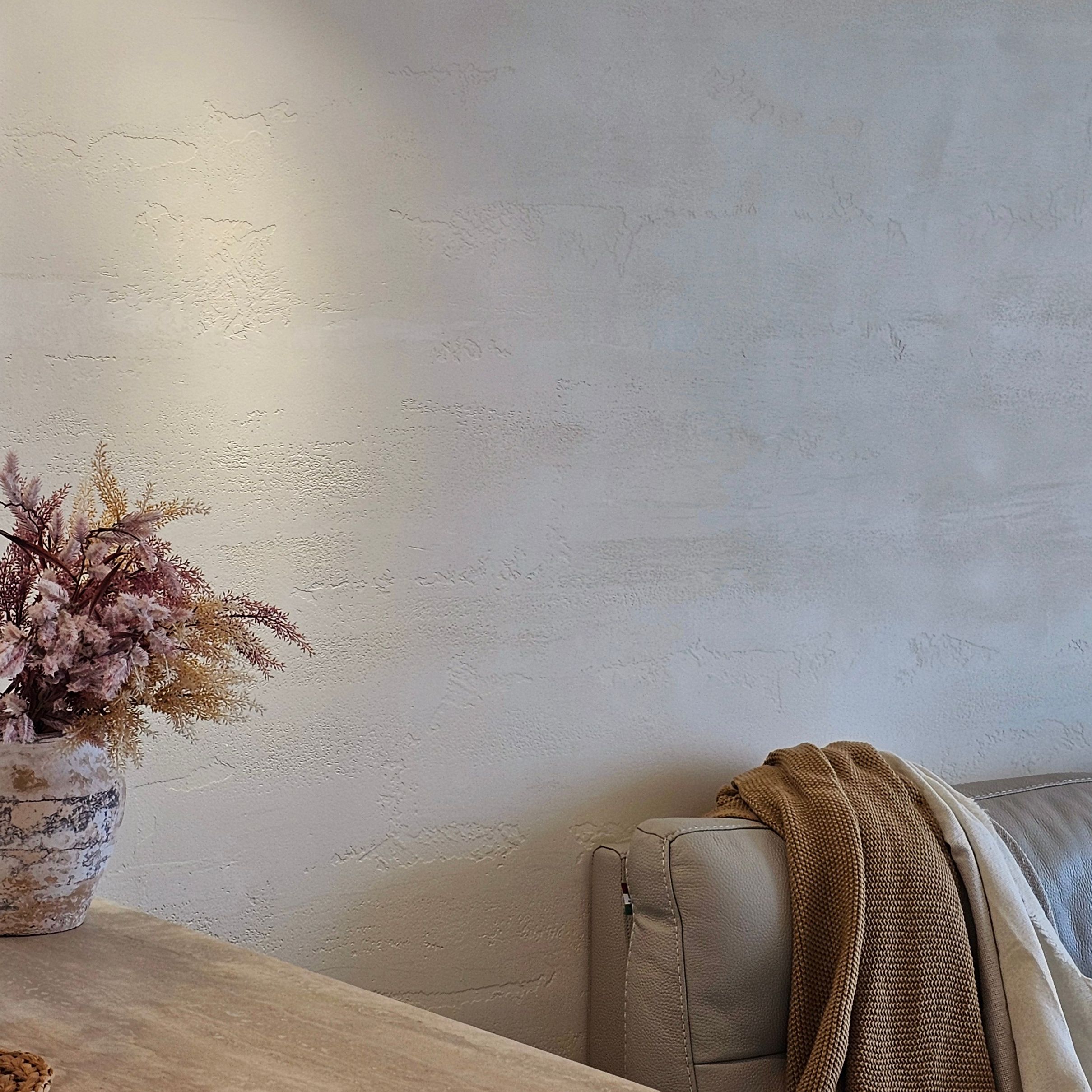 Rasato Fine, pürüzsüz ancak karakterli bir yüzey oluşturur. Doku içermez, fakat matlığı ve mineral taneleri sayesinde yüzeyin plastik boya gibi sığ görünmesini engeller. Duvarı işlenmiş gibi gösterir ve estetik bir sadelik sunar.